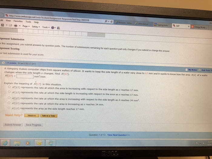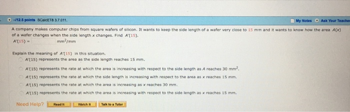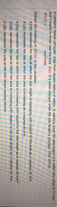 The area is ax. Early transcendentals a a company makes computer chips from square wafers of silicon. A company makes computer chips from square wafers of silicon.