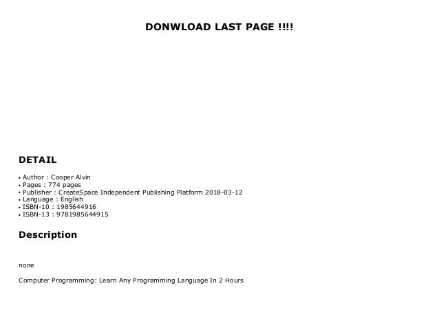 Are you worried about the tec. Computer programming learn any programming language in 2 hourspdf size. See all formats and editions hide other formats and editions.