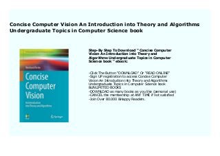 An introduction into theory and algorithms undergraduate topics in computer science english edition. Retrouvez concise computer vision.