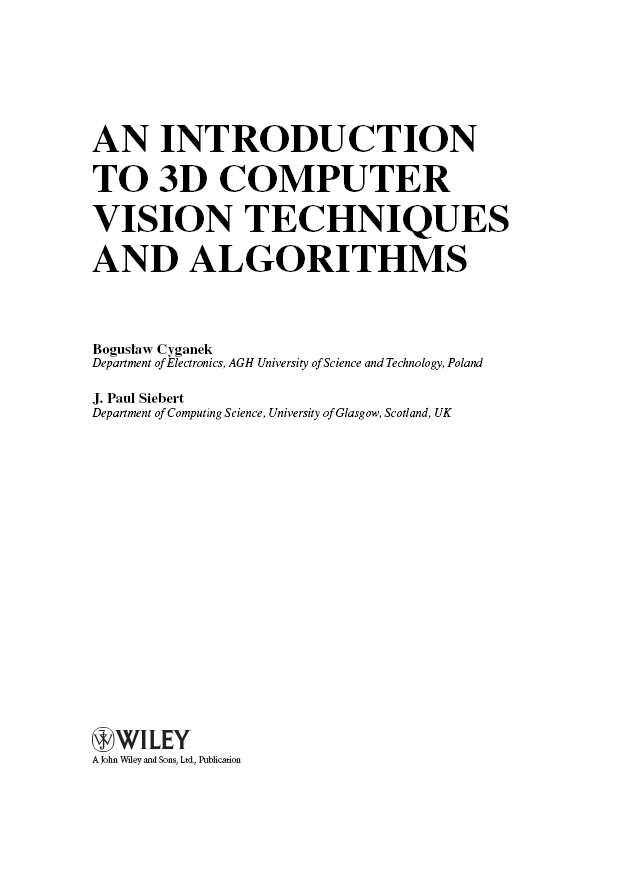 An Introduction To 3d Computer Vision Techniques And Algorithms Boguslaw Cyganek 京东阅读 在线阅读