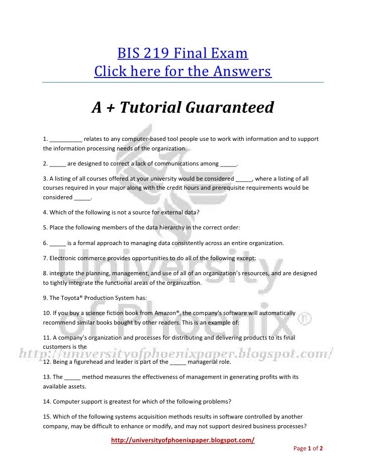 Bis 219 Final Exam University Of Phoenix Final Exams Study Guide 1