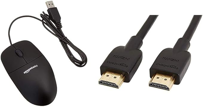 Amazon Com Amazonbasics 3 Button Usb Wired Computer Mouse Black 1 Pack Bundle With Amazonbasics High Speed 4k Hdmi Cable 6 Feet Electronics