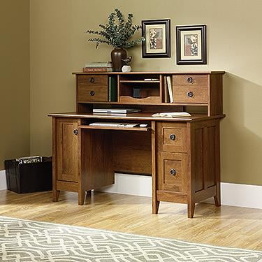 Better homes and gardens oakmore place computer desk euro oak. The computer desk is constructed of an engineered wood with a glossy dark oak finish. The door on the lower cubby features easily adjustable euro hinges making opening and closing the. It is constructed of an engineered wood that is sturdy and long lasting.