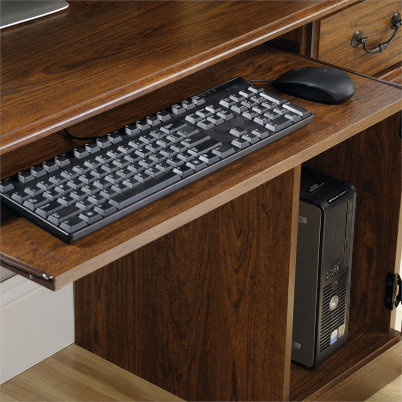 Featuring a slide out keyboard and mouse shelf utility drawer and vertical cabinet for cpu storage this little desk was designed with the flexibility to meet your needs. Its top surface provides you with the ideal amount of space for your computer screen a printer and more. Bowery hill executive desk in milled cherry this bowery hill executive desk is a timeless addition to any workspace.