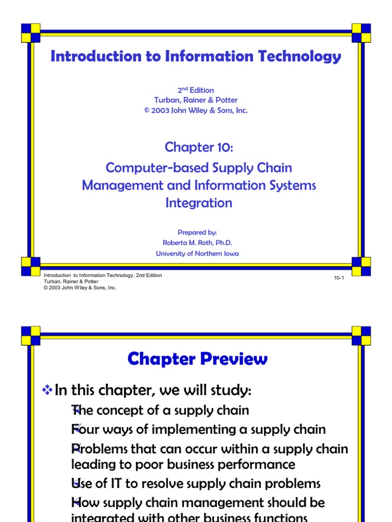 Introduction To Information Technology Computer Based Supply Chain Management And Information Systems