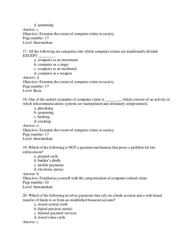This is an. Choose the one alternative that best completes the statement or answers the question. The leading introduction to computer crime and forensicsis now fully updated to reflect todays newest attacks laws and investigatory best practices.